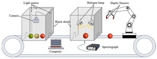 - Chen, Y.; Lin, J.; Du, X.; Fang, B.; Sun, F.; Li, S. Non-Destructive Fruit Firmness Evaluation Using Vision-Based Tactile Information. In Proceedings of the IEEE 2022 International Conference on Robotics and Automation (ICRA), Philadelphia, PA, USA, 23–27 May 2022; pp. 2303–2309. [Google Scholar]