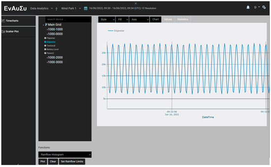 In particular, the web application offers the ability to retrieve, download and process data. The sensory data are processed via the Rainflow Counter Method algorithm [45] to determine the load cycles of the blade. The algorithm is applied to the range of the raw data selected by the remote user. The resulting cycle counts are then displayed in histogram format. Thus, the elaboration of the raw data in the EnAuSy web application enables the estimation of the remaining useful life of the blade.