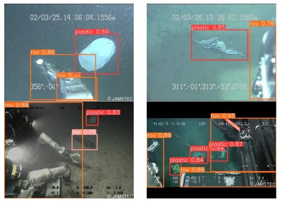 Delving into the specifics, the validation subset is enriched with 853 instances of plastic debris, 70 biological specimens, and 141 ROV units. In parallel, the testing array presents a composition of 937 plastic items, 396 biological entities, and 335 ROVs, offering a comprehensive spectrum for analytical pursuits. For illustrative clarity, Figure 9 curates a select excerpt from this dataset, providing a visual gateway into the diverse range of submerged objects it encompasses.