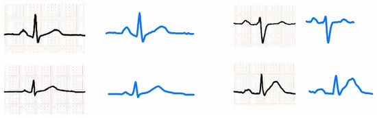 ECG images can be used as they are for training a classification model [40,41,42], but these models cannot be used directly on ECG machines for real-time monitoring and prediction. The temporal correlation of ECG signals is also lost in image-based models, and these models require a larger number of parameters to train, thus increasing their computational complexity. Therefore, the ECG images were converted to numerical/time series signals by leveraging open-source ECG digitization tools. Table 5 compares the benefits and limitations of using ECG images and time series signals for ECG classification.
