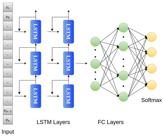 A famous sequence model is long short-term memory (LSTM), which is a type of recurrent neural network (RNN) designed to handle patterns in sequential and time series data. LSTM networks consist of memory cells that can store and retrieve information over extended sequences, enabling them to retain important information for later use [35]. Karri et al. [36] proposed an LSTM network for ECG classification on the MIT-BIH arrhythmia database. The features were extracted and hybridized to feed to the LSTM network for classification. A method of detecting the QRS complex was devised using discrete wavelet transform and delta sigma modulation. The proposed method showed an accuracy of 99.64% and an F1 score of 98.18% on five classes from the MIT-BIH dataset.