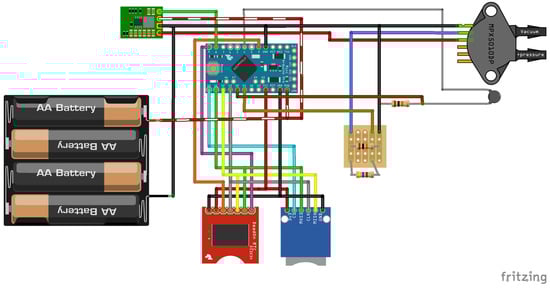 The wiring for the sensor is provided in Figure 2 and a more explicit instruction guide for construction is available in the Supplementary Materials. The code is available at https://github.com/rhpearce/waterdepthsensor (accessed on 9 April 2024). An overview of the code’s structure and process is given in Figure 3.