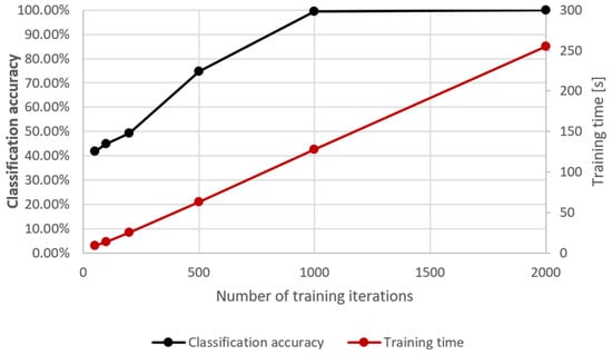 Optimisation of the number of training iterations against classification accuracy and the training cycle duration.