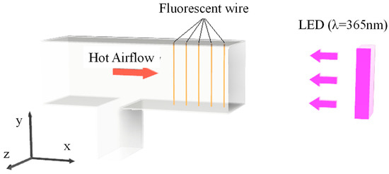 - Funatani, S.; Tsukamoto, Y.; Toriyama, K. Temperature measurement of hot airflow using ultra-fine thermo-sensitive fluorescent wires. Sensors 2022, 22, 3175. [Google Scholar] [CrossRef]