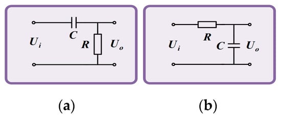 In this paper, both the high-pass filter circuit and the low-pass filter circuit use the RC filter circuit. The RC filter circuit has the advantages of a simple structure and small size. The schematic diagram is shown in Figure 13.