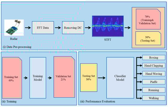 - Ahmed, A.; Zhang, Y.D. Radar-Based Dataset Development for Human Activity Recognition. In Proceedings of the 2020 IEEE Signal Processing in Medicine and Biology Symposium (SPMB), Philadelphia, PA, USA, 5 December 2020; IEEE: Piscataway, NJ, USA, 2020; pp. 1–4. [Google Scholar]
