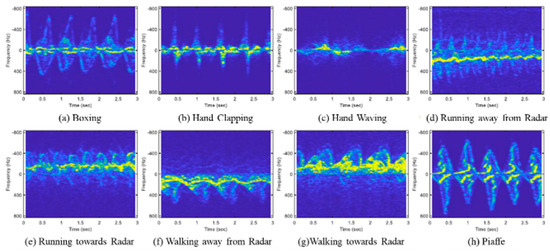 - Liu, Z.; Xu, L.; Jia, Y.; Guo, S. Human Activity Recognition Based on Deep Learning with Multi-Spectrogram. In Proceedings of the 2020 IEEE 5th International Conference on Signal and Image Processing (ICSIP), Nanjing, China, 3–5 July 2020; IEEE: Piscataway, NJ, USA, 2020; pp. 11–15. [Google Scholar]