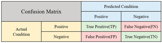To evaluate the effectiveness of the model, this study employs a confusion matrix as a statistical tool to discern the discrepancies between predicted and actual outcomes. The analysis utilizes an untrained test set as input data. Figure 6 presents a schematic representation of the confusion matrix, which categorizes the model’s predictions into four key performance metrics: precision, recall, F1-score, and accuracy. These indicators are derived by comparing the predicted results against the actual ones, leading to four possible outcomes: True Positive (TP), False Positive (FP), True Negative (TN), and False Negative (FN). For illustration, consider the example of running: