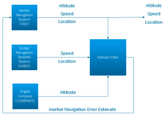 2.4.3. The Combined Navigation Principle (GNSS/INS + COMPASS)