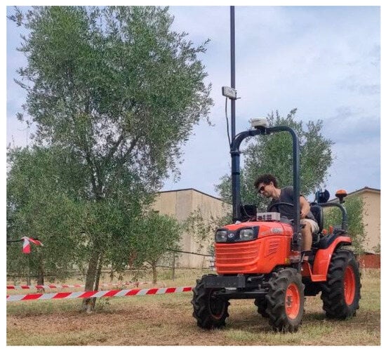 - Perna, C.; Sarri, D.; Luglio, S.M.; Lisci, R.; Vieri, M. Evaluating multispectral responses of an olive tree canopy at different heights using ground-vehicle-mounted proximal sensing. In Precision Agriculture ’23; Wageningen Academic Publishers: Wageningen, The Netherlands, 2023; pp. 979–986. [Google Scholar] [CrossRef]