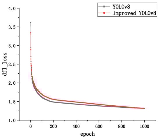 By observing the loss curves of the two models, it can be found that the improved YOLOv8 model converges slower than the YOLOv8 model when the epoch is less than 600 times, and the loss value is higher than the YOLOVv8 model. The improved YOLOv8 model converges faster than the YOLOv8 model when the epoch is greater than 600 rounds, and the loss value is slightly lower than the YOLOV8 model when the epoch reaches 1000 times.