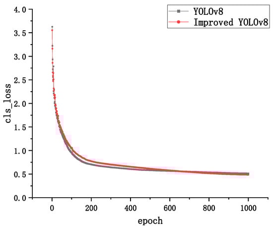 In order to verify the convergence performance of the optimized model on the dataset, the convergence of the YOLOv8 model and the improved YOLOv8 model is compared. Even the bounding box loss for both models is used to calculate the difference between the predicted bounding box and the true bounding box; the confidence loss is used to calculate the difference between predicted and true feature points and the classification loss is used to compare the difference between predicted category distributions. The true category labels are shown in Figure 8, Figure 9 and Figure 10.