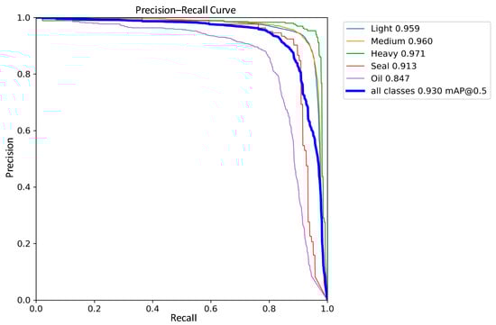 is the average accuracy, calculated by plotting the PR curve and then selecting the average of the maximum accuracy greater than or equal to each R value. is the average of the for each type of scrap, as in Equation (8).