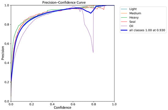 The comparisons of the precision curves of the classical YOLOv8 network model and the improved YOLOv8 network model on five types of scrap categories are shown in Figure 13 and Figure 14. According to the experimental results, compared with the classical YOLOv8 model in terms of precision, the precision of each type of scrap is improved in the improved network model, and the average precision is increased by 2.1%. It is worth noting that the precision curve of the improved model is smoother, which is most obvious in the case of oil scrap. This proves that the improved network model has not only improved in accuracy but also has increased robustness.