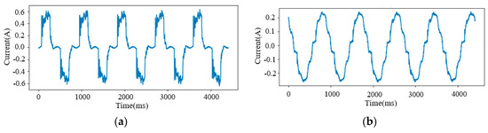 The validation results show that retraining the BP model can improve the identification accuracy of unknown loads. Because the Led Light (Load 21), Microwave (Load 22), Sewing Machine (Load 25), and Laptop (Load 29) fluctuate greatly during operation (the current waveforms of the Laptop and the Led Light are shown in Figure 6), the features extracted using the Siamese model are also unstable. Therefore, the BP network cannot offer a high-precision similarity. This issue can be solved by adjusting the parameters of each neuron in the BP model, which can prompt identification accuracy. The average -score of 12 unknown loads has been improved from 0.9392 to 0.9917 with retraining.