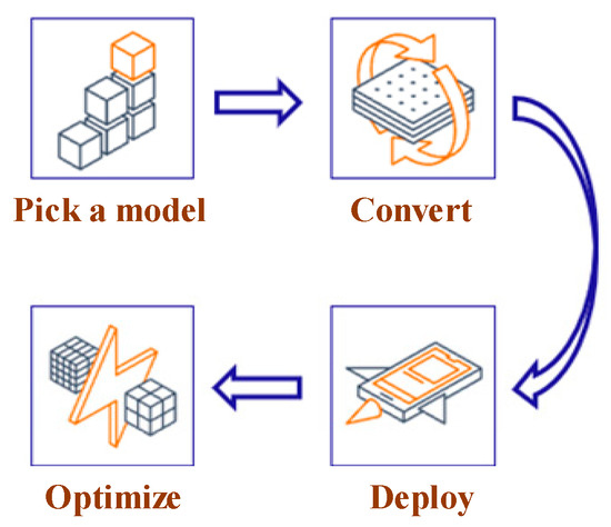 TensorFlow Lite is a framework that enables machine learning on mobile, embedded, and IoT devices. It can help to meet the real-time requirements of the NILM system and power consumption privacy. As shown in Figure 8, the workflow of TensorFlow Lite deployment is as follows: