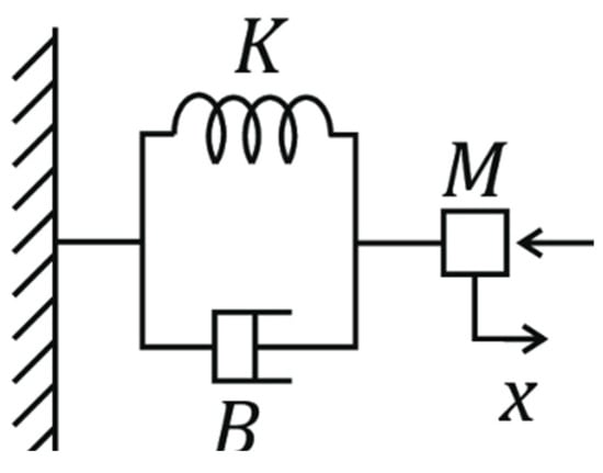 A mass–spring–damper system, as shown in Figure 4, was used to simulate impedance control because it provides a simplified yet effective model for implementing compliant behavior in robotic systems by adjusting their stiffness and damping properties. The system’s mathematical model is expressed as