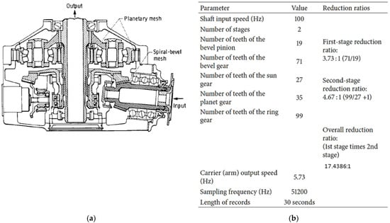 (a) Bell 206 3-planet schematic presentation [27] (b) key information and frequencies.