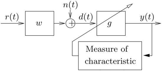 MED [25] is a system identification method used originally to extract reflectivity information from seismic data to identify and locate layers of subterranean minerals. MED has shown its effectiveness in de-convolving impulse excitations from a mixture of response signals [55,56]. An illustration of the blind convolution concept is shown in Figure 15 [57]. In this illustration, it is assumed that an observed fault signal d(t) (in this case, the output of cepstrum editing after being low-pass filtered) is a convolution of some transfer function w(t) (e.g., transfer path effect) with the fault impulse series r(t) plus added superimposed noise n(t). The goal of the blind deconvolution is to recover the fault impulse series r(t) by removing/reducing the effect of the transfer function. In other words, the aim is to find an inverse filter (g) which creates y(t), where y(t) = g d(t) such that y(t) is a representation of r(t), which could be a shifted and scaled version of r(t). MED works by searching for an optimum set of filter coefficients (de-convolving filter) to recover the output signal of an inverse filter with the maximum value of kurtosis, where kurtosis is a fourth-order statistic that measures the deviation from Gaussianity in the signal.