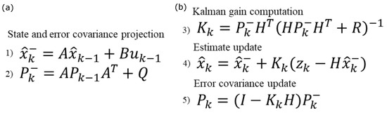 - Welch, G.; Bishop, G. An Introduction to the Kalman Filter; Department of Computer Science University of North Carolina at Chapel Hill: Chapel Hill, NC, USA, 1995. [Google Scholar]