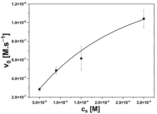 Graphical dependence of the Michaelis–Menten equation for the Mut1 enzyme with the substrate concentration 0.01 mM.