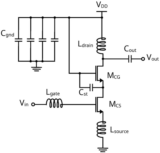 - Castagnola, J.L.; García-Vázquez, H.; Dualibe, F.C. Design and optimisation of a cascode low noise amplifier (LNA) using MOST scattering parameters and gm/ID ratio. In Proceedings of the 2018 IEEE 9th Latin American Symposium on Circuits and Systems (LASCAS), Puerto Vallarta, Mexico, 25–28 February 2018; pp. 1–4. [Google Scholar] [CrossRef]