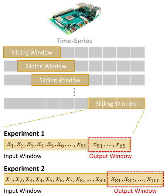Different size input and output windows were evaluated (experiment 1 and experiment 2). Forecast accuracy and computational time per forecast (output window) for each individual were determined using a single-point sliding window.