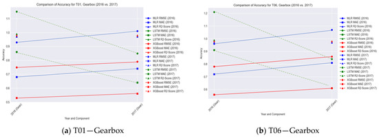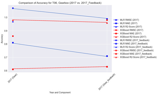 From the metrics of the performance of the model during the feedback runs of the model, we compare the actual T06_2017_Gear performance metrics and those of the feedback run performance in terms of RMSE, MAE, and R-squared (Table 5 and Figure 21).