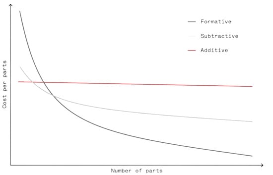 Cost comparison between formative, subtractive, and additive manufacturing [].