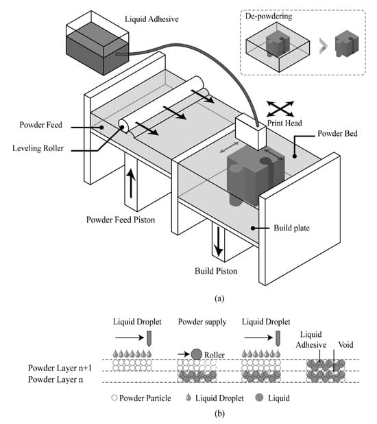 - Yanez-Sanchez, S.I.; Lennox, M.D.; Therriault, D.; Favis, B.D.; Tavares, J.R. Model approach for binder selection in binder jetting. Ind. Eng. Chem. Res. 2021, 60, 15162–15173. [Google Scholar] [CrossRef]