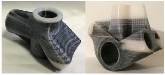 The main advantages of FDM printing are the low price, their ability to be reproduced, their speed efficiency, and low maintenance []. However, there are also many different limitations facing FDM printers. This type of printer typically requires a higher temperature and supports for angles greater than 45 degrees []. These supports lead to materials being wasted and an increased production time. One of the biggest limitations of FDM is its inability to produce a part regardless of the geometry. These limitations will be discussed in a later section of this review.