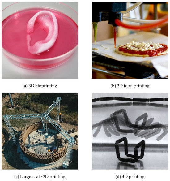 Additive manufacturing (AM), widely recognized as 3D printing, has undergone a significant evolution since its inception in the 1980s, transitioning from a rapid prototyping tool to a viable manufacturing method for a broad spectrum of applications. The technology’s advancement is marked by innovations in materials, technology, and software, propelling AM into industries such as aerospace, automotive, healthcare, and fashion []. Today, 3D printing is celebrated for its unparalleled customization capabilities, reduced waste, and the ability to fabricate complex geometries that are difficult or impossible to achieve with traditional manufacturing methods []. This evolution has transformed AM into a sophisticated array of processes that cater to a diverse range of materials, including polymers, metals, ceramics, and composites, driving innovations across numerous sectors. As AM continues to advance, it is set to revolutionize production processes, supply chains, and product design worldwide, marking its significance as a transformative technology in the manufacturing realm and outlining a future where on-demand customized production can become a reality across industries.