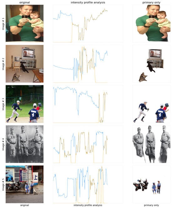 Figure 5. Different techniques for original vs. object-focused images, illustrating multi-object enhancements. - Intensity Profile Analysis: The intensity profile comparison between the original and proposed images is shown in Figure 6. The blue and orange lines represent the original and proposed enhanced image intensity profiles. This graph contains the intensity profiles for images containing one or two objects. It is clearly evident that the orange line, i.e., the proposed image’s intensity profiles, have an increased contrast and sharper peaks. This states the fact that the images are enhanced significantly in addition to the clarity in vision.