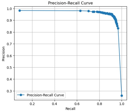 Figure 14 represents the precision plotted against the recall values. The area under the curve can be seen to be very large for precision and recall, PR-AUC. As the precision reflects the accuracy of TP and minimizes FP, and the recall focuses on minimizing the FN value, the AUC can be increased only by proposing a fair enough threshold value. Based on the experiments performed, the optimal threshold value found was 0.3899, which produces the highest value of AUC for this experiment, i.e., 0.8751. Concluding the graph analysis, it can be stated that the proposed model is fair enough for the trade-off between precision and recall due to its higher value of PR-AUC.