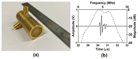 Photograph of (a) prototype PIUT and (b) measured pulse–echo data.