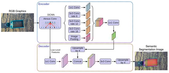 The architecture of the DeepLabv3+ network.