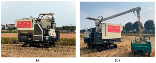 - Zhang, W.; Zhang, Z.; Zhang, F.; Ding, F.; Hu, L.; Luo, X. Cooperative autonomous operation strategy and experiment of the rice harvester together with a rice-transporting vehicle. Trans. Chin. Soc. Agric. Eng. (Trans. CSAE) 2022, 38, 1–9. [Google Scholar]