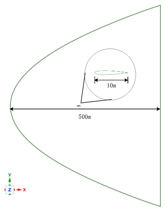 In this study, high-speed flying wing-shaped targets are selected as the analysis objects. By modeling the shape and external flow field of the target, fluid simulation calculations are performed on its flow field. Wing-shaped target and flow field modeling are shown in Figure 5.
