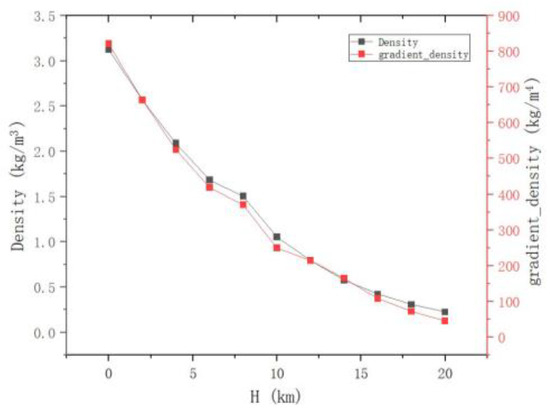 Figure 7 shows the results of statistical analysis. It is observed that both the maximum density and the maximum density gradient of the target gradually decrease with the increase in flight altitude. According to the ISNR formula, it can be inferred that the image signal-to-noise ratio (ISNR) of the BOS system is proportional to the target density gradient. Therefore, for the BOS detection system, as the flight altitude increases, the disturbance caused by the target decreases, leading to a lower image detection signal-to-noise ratio. Moreover, the trend of this decrease is not linear but tends to flatten out progressively.