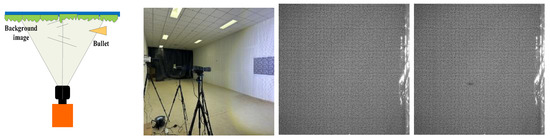 In recent decades, with the significant improvement in the survivability of aircrafts, traditional infrared and radar detection methods are facing serious efficiency problems [1,2,3]. In fact, when an aircraft flies in the atmosphere, in addition to detecting the high temperature caused by the intense friction between the target body and the atmosphere, the interaction between the target and the atmosphere will form a high-temperature, high-pressure shock wave flow field. The use of Background-Oriented Schlieren (BOS) technology to visualize invisible flow fields is a novel detection system [4,5]. For fixed wavelength conditions, changes in gas temperature, composition, and pressure in the shock flow field will cause changes in the refractive index of the atmosphere. This leads to non-uniformity in the refractive index distribution in the shock wave region. According to the law of refraction, light will be deflected when it propagates in an environment with a non-uniform gas refractive index. Background schlieren imaging technology visualizes this non-uniform deflection phenomenon [6,7]. For example, NASA used two training jets in Armstrong in 2019 to visualize the process of aircraft turbulence interaction, verifying the feasibility of this detection technology [8].