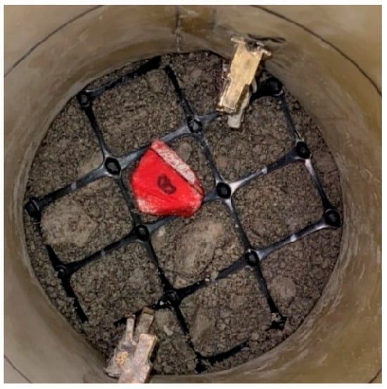 Geogrid and Smart Pebble placed at the TX-12 specimen’s mid-height.