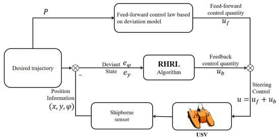 The remaining sections of this manuscript are arranged as follows. In Section 2, a dynamic model of a USV is built. Then, a USV trajectory control algorithm based on RHRL is proposed and shown to be stable. In Section 3, the simulation and comparison experiments are carried out, and disturbances are added. Section 4 contains the conclusions.