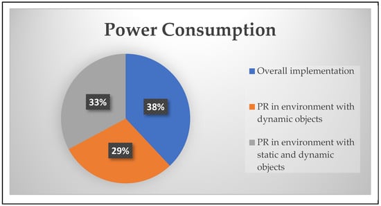 The power consumption of the LUTs, BRAM, and DSP slices was 43.57%, 61.42%, and 55.45% in an environment with dynamic objects and 45.76%, 65.71%, and 63.63% in an environment with static and dynamic objects, respectively. Similarly, the static power consumption with partial reconfiguration flow by the above modules was monitored using a Xilinx Power Estimator (XPE). As illustrated in Figure 8, values of 1.69 watts and 1.92 watts were recorded.