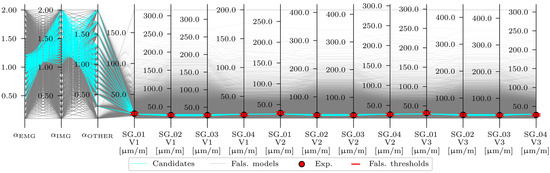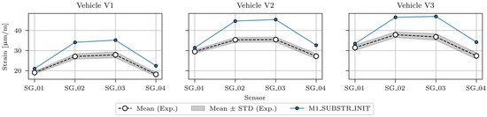| Strains [μm/m] | V1 | V2 | V3 | ||||