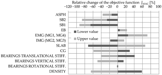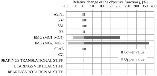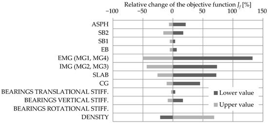 | ASPH, SB1, SB2, EB, EMG (MG1, MG4), IMG (MG2, MG3), SLAB, CG | 0.75 × design | 1.25 × design | Young’s modulus change |