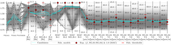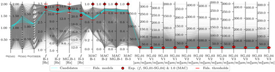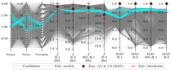 - All frequencies, all MACs, and all strains (acceleration-and-strain-based EDMF, analysis number 15).