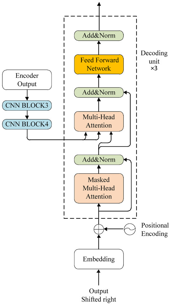 The structure of the parallel decoder is shown in Figure 7, which consists of three decoding units. Each unit contains four sub-modules: Multi-Head Attention, Masked Multi-Head Attention, Feed-Forward Network and Add&Norm. The Multi-Head Attention module and the Add&Norm module were similar to those described in Section 3.2.