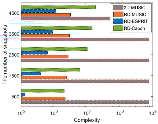 Summarizing the computational complexities of the four algorithms (2D-MUSIC, RD-MUSIC, RD-ESPRIT, and RD-Capon).