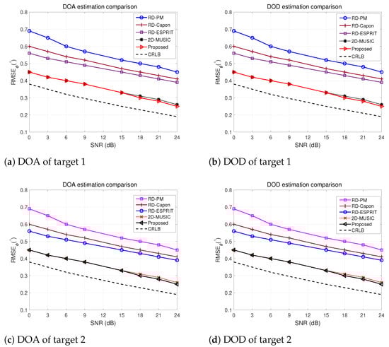 - Zhang, X.; Xu, L.; Xu, L.; Xu, D. Direction of Departure (DOD) and Direction of Arrival (DOA) Estimation in MIMO Radar with Reduced-Dimension MUSIC. IEEE Commun. Lett. 2010, 14, 1161–1163. [Google Scholar] [CrossRef]