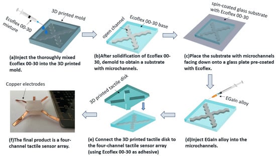 Schematic of the fabrication process for the four-channel tactile sensor.